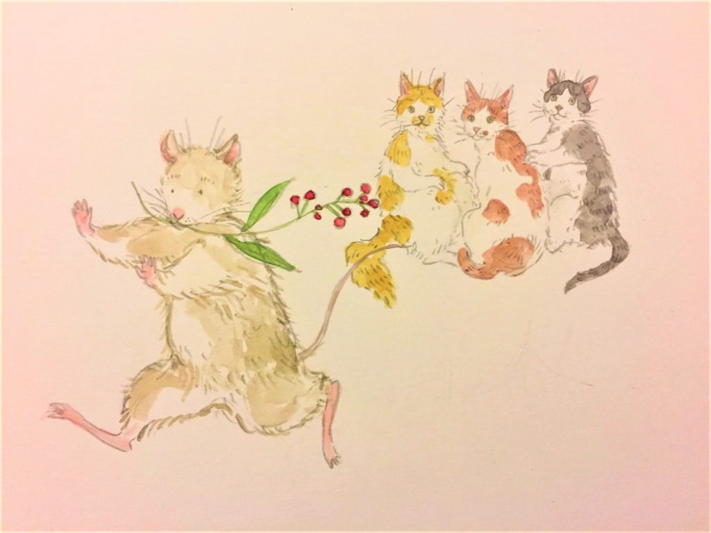 ネズミの勢いに、チャイ、チビ太、ミコ太がビビっておりますね、、(^^)