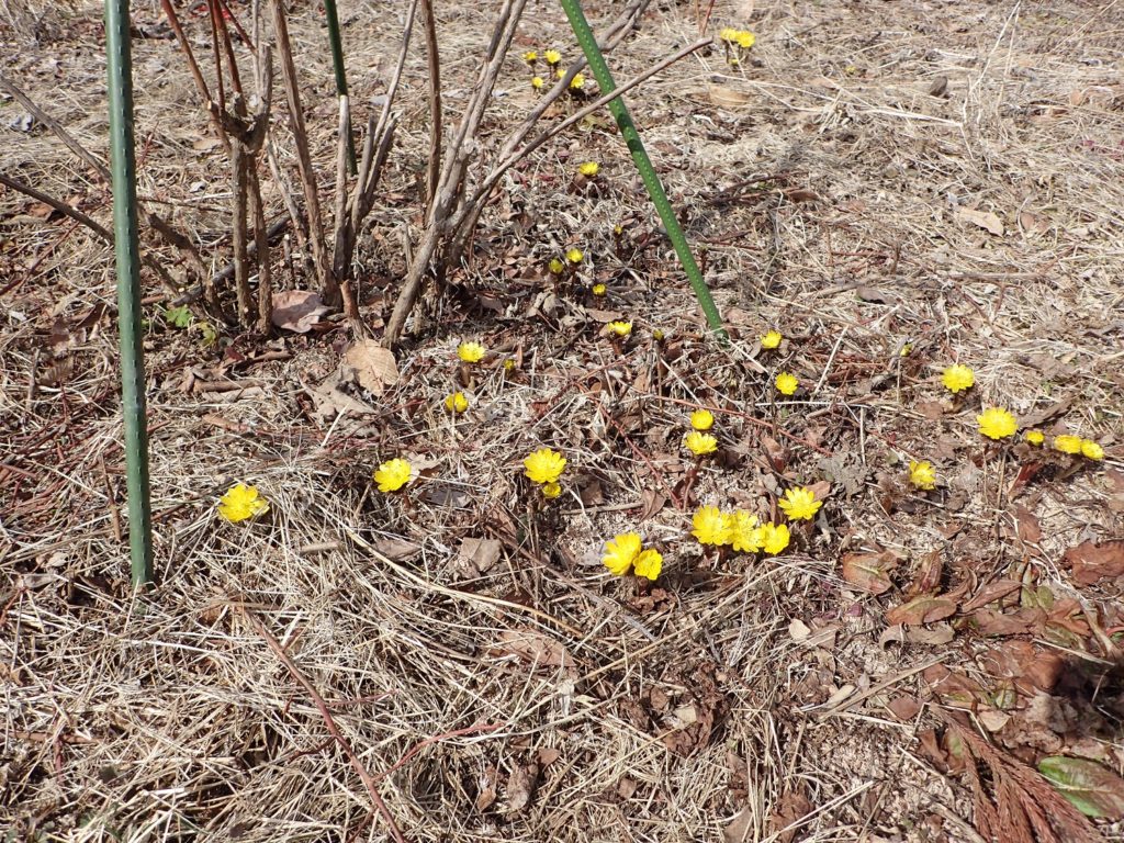 そこかしこでは、フクジュソウの花が開いていました!