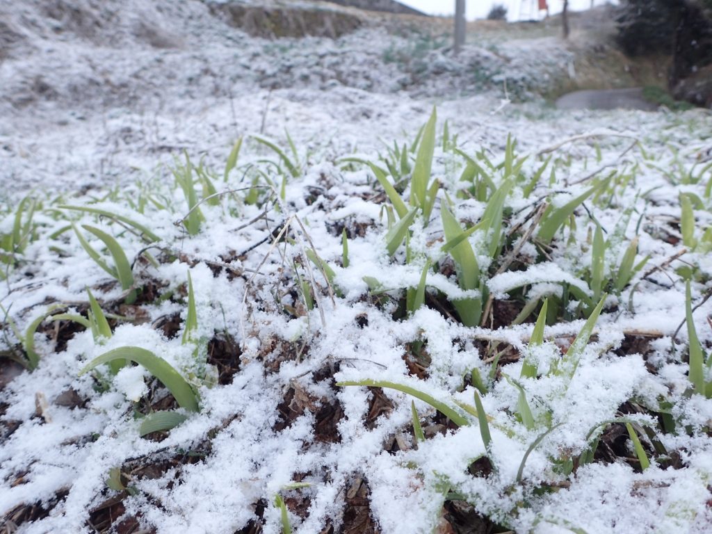 ノカンゾウにうっすらと積もった雪です。