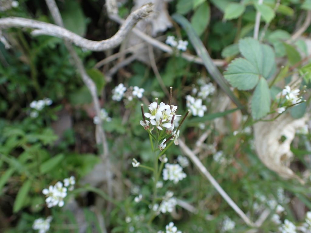 タネツケバナ。用水路のわきに、ピンピンピンッという感じで立っていました。