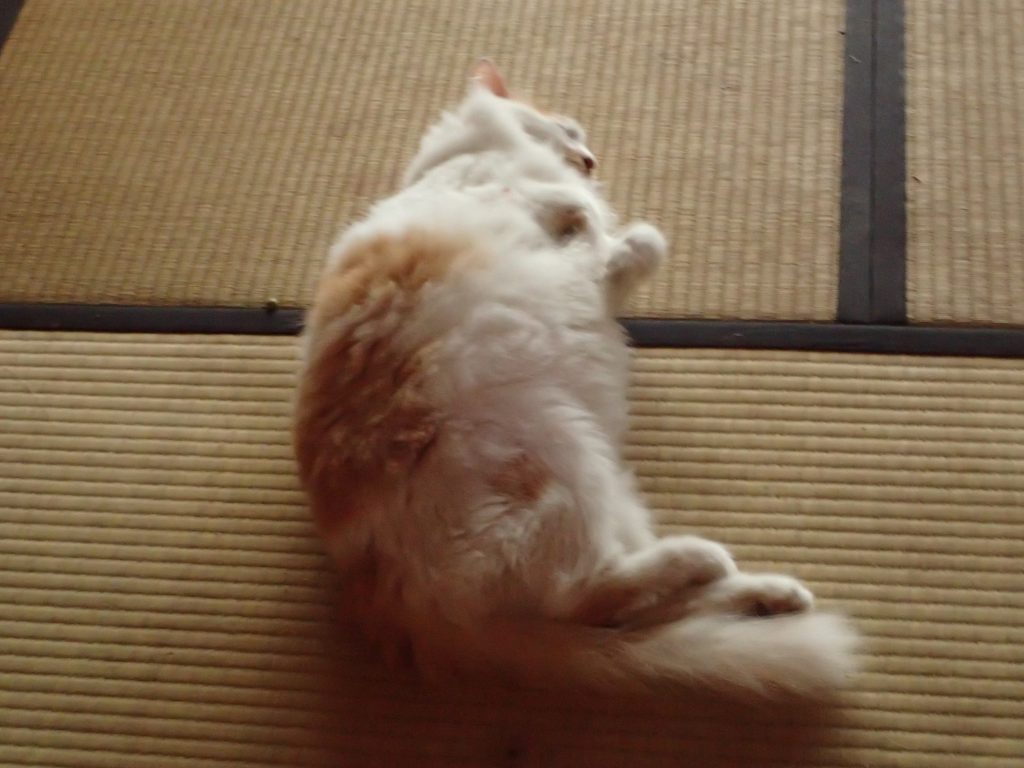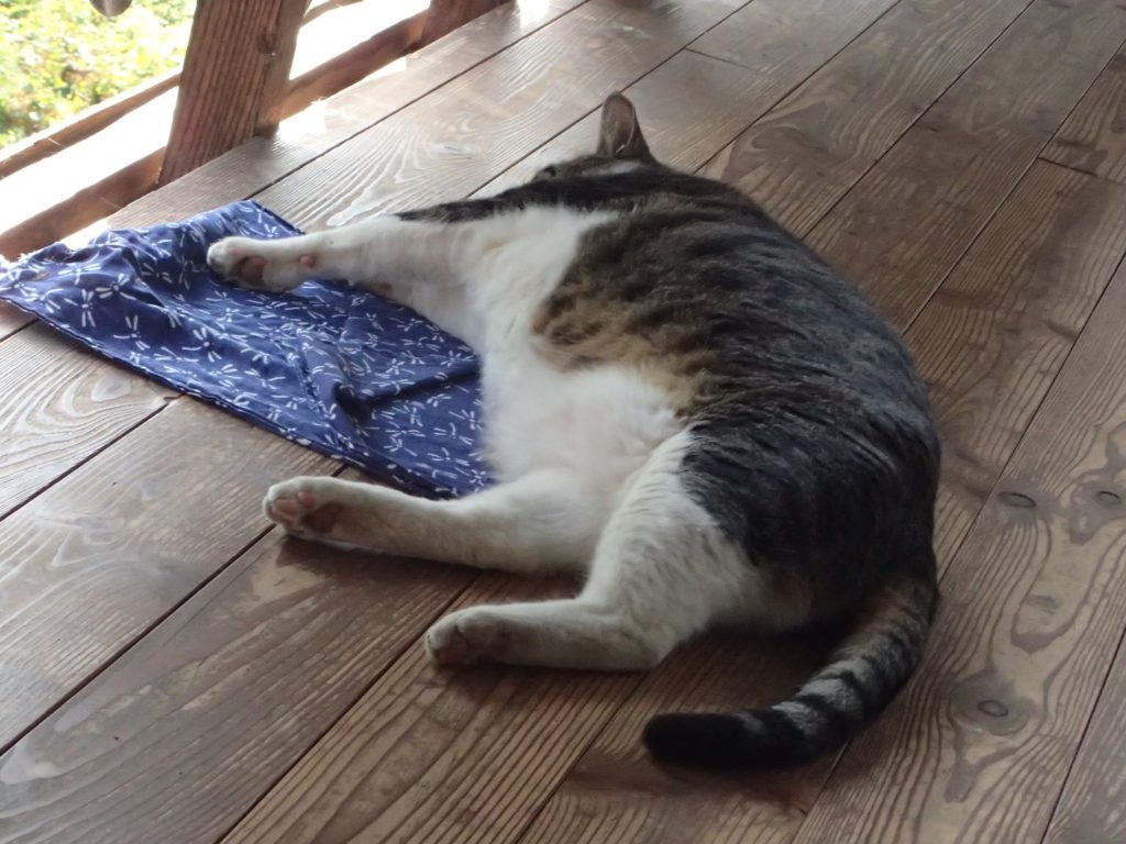 こう暑くては、大きな体を持ち上げるのはしんどいですよ、、チビ太はやせないと、、