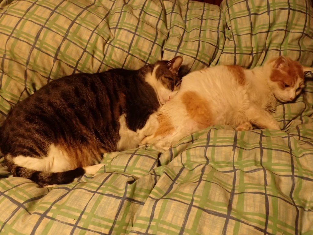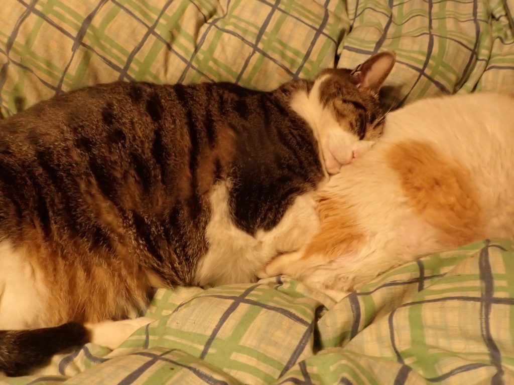 チビ太が、チャイのお尻にぴったりと顔をうずめて寝ています。。