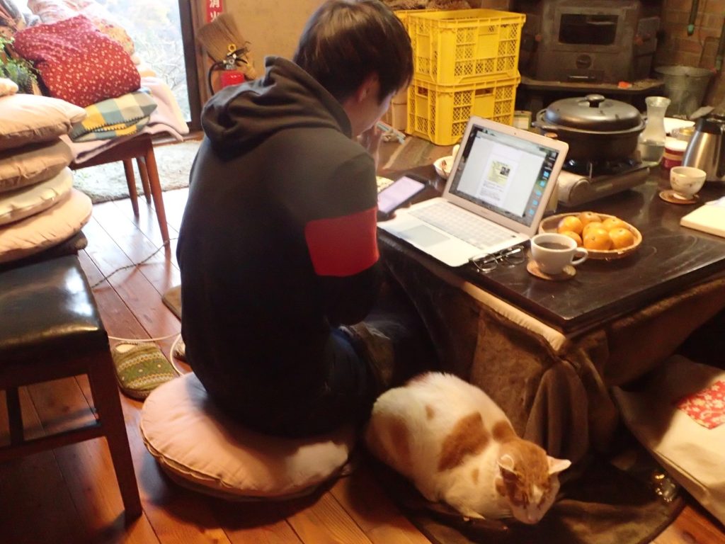 おこたに入って、横にはチャイちゃん。
