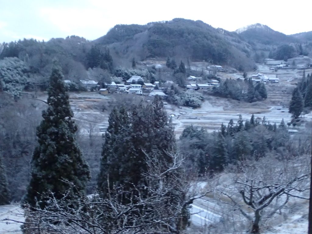 今朝は、今年初めて、うっすらと雪が積もりました。