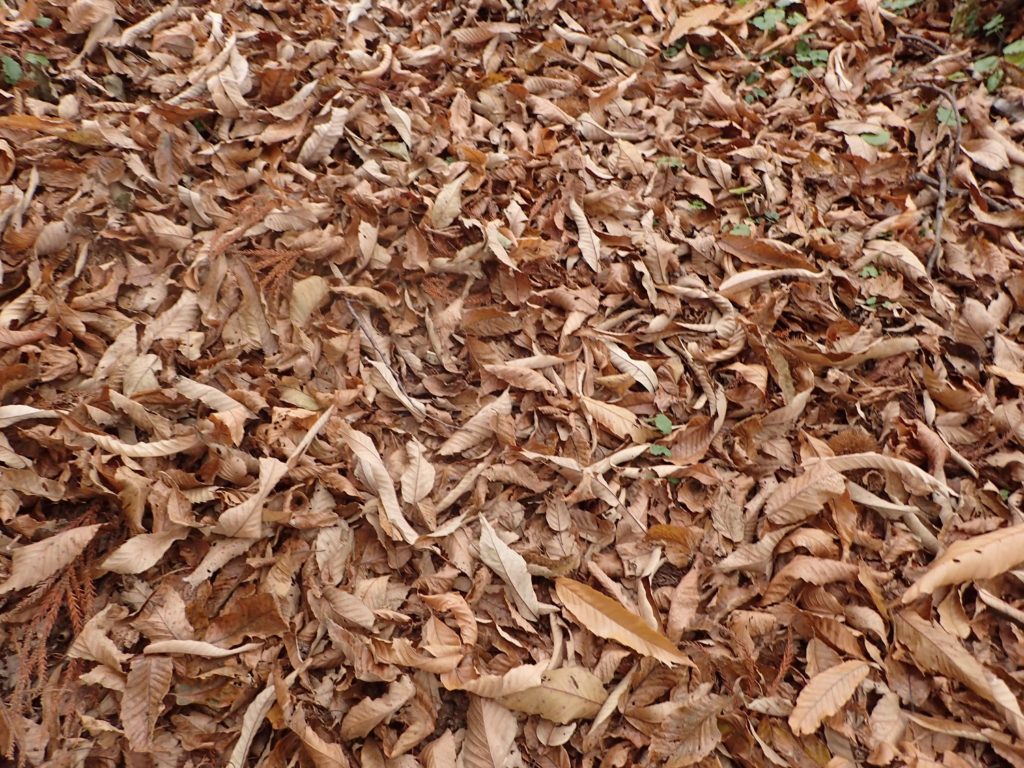 この落ち葉、本当は掃き集めて畑に撒くと良いのですが、今年はまだ間に合うかな、、、