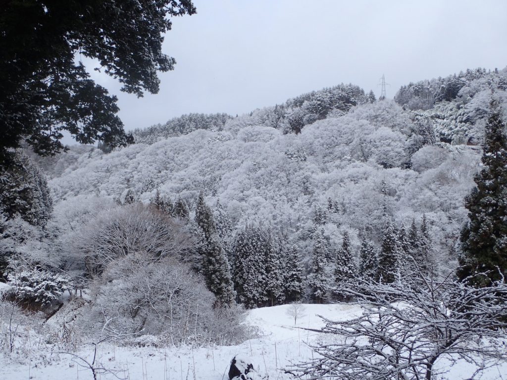 午前中いっぱい降り続いた雪も、午後には止んだのですが、この冬、初めての雪景色です!