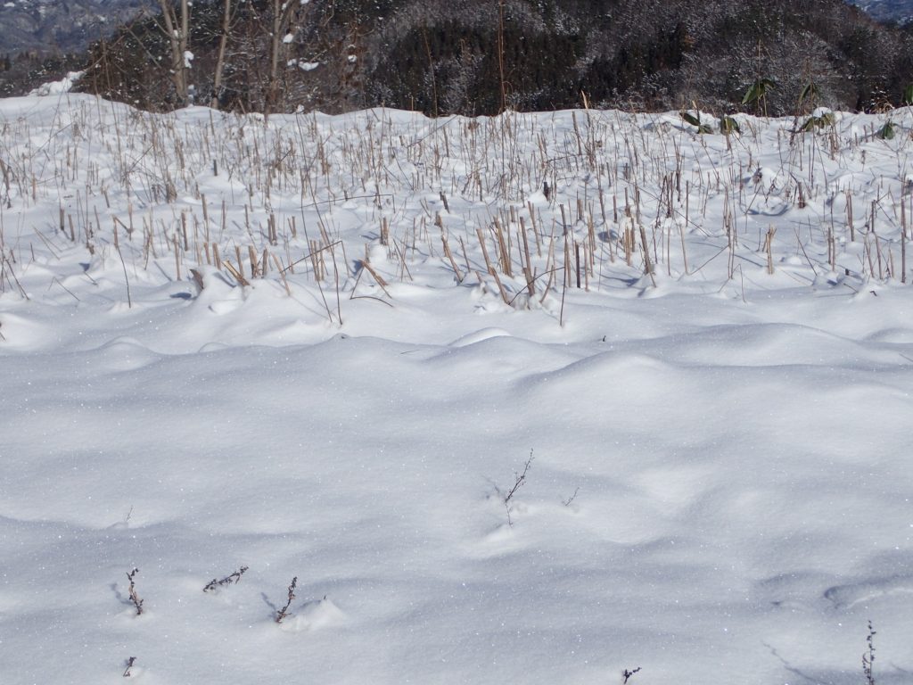 今日もお天気が良くて、今はぐんぐんと雪が溶けています。でも、畑にはまだ10センチ以上も積もったままでした。