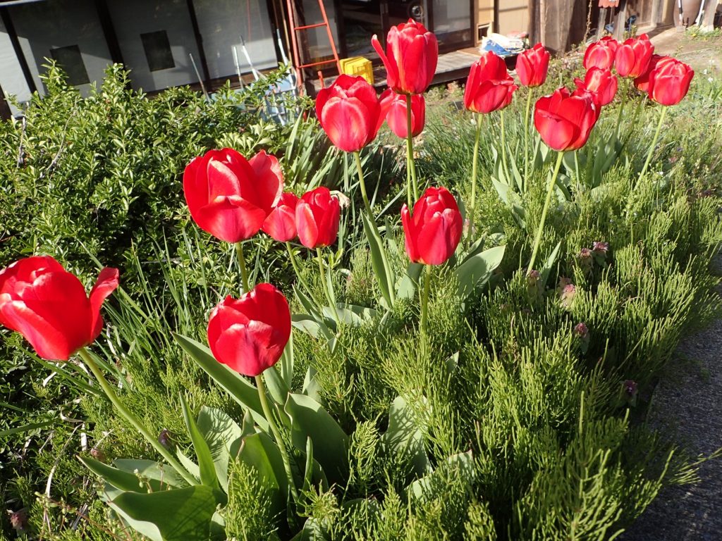 お庭では、真っ赤なチューリップが満開!