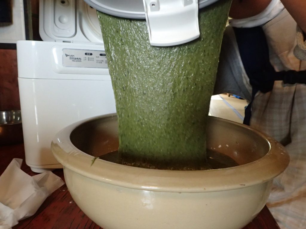 餅つき機を使って作るのですが、途中で少し手間をかけまして、二日目になっても柔らかい草餅を作っています!