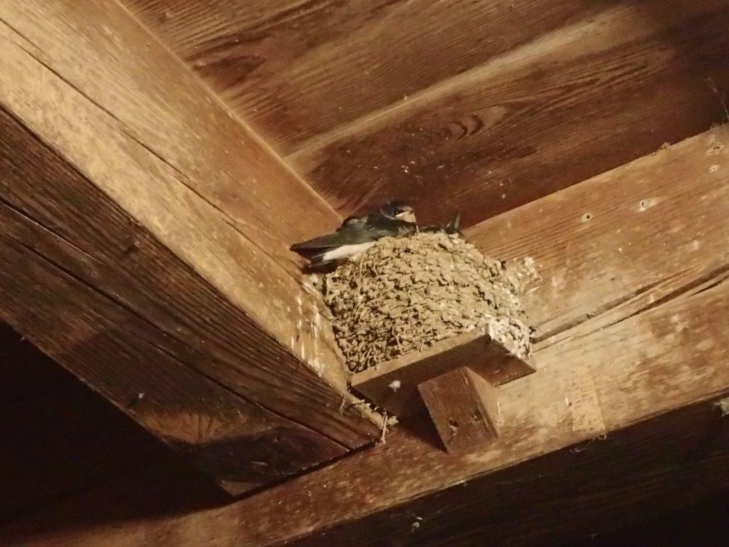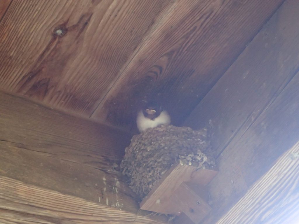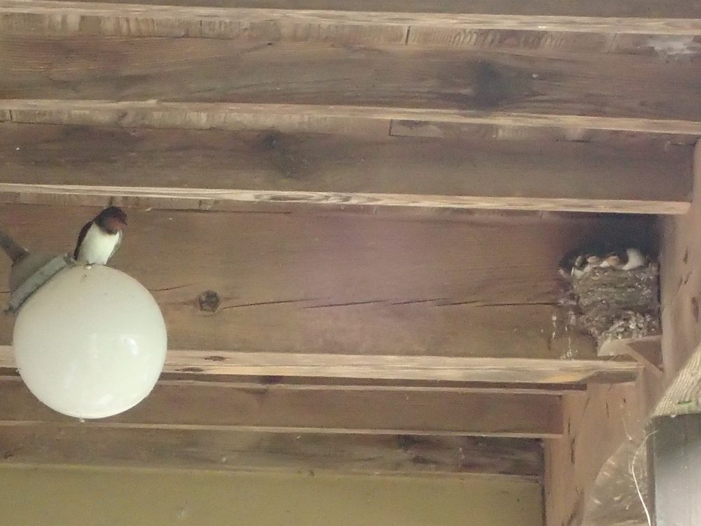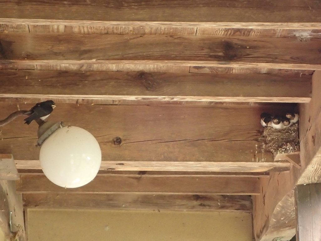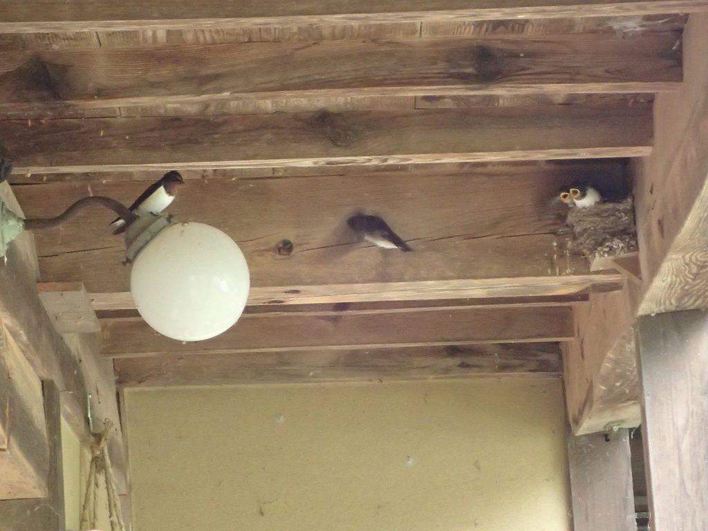 今朝のツバメ観察は、ご宿泊のお客様と一緒だったのですが、その後雨が降ってきたので、そのお客様が「濡れないように中に入っておいで」と声を掛けたところ、本当に1羽のヒナが入ってきてくれました!