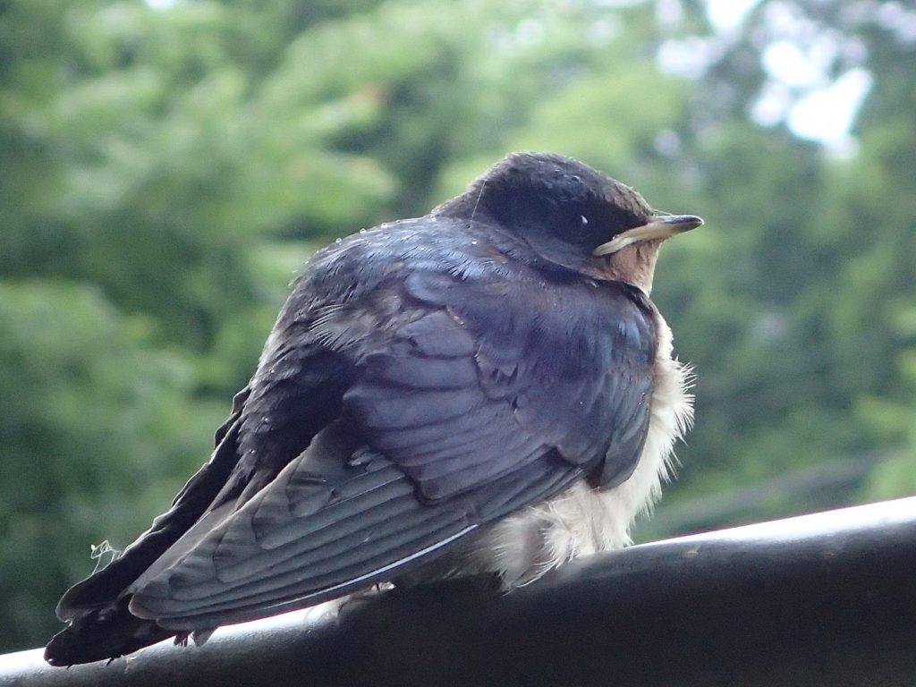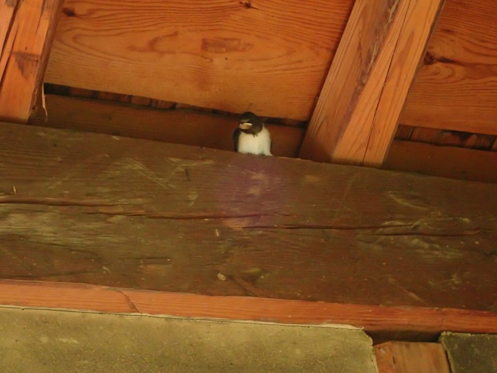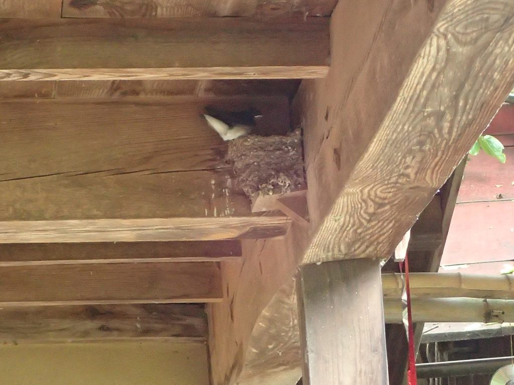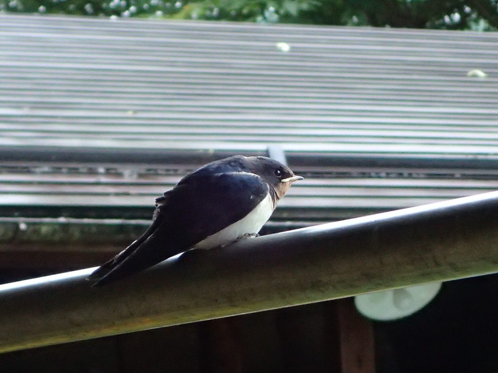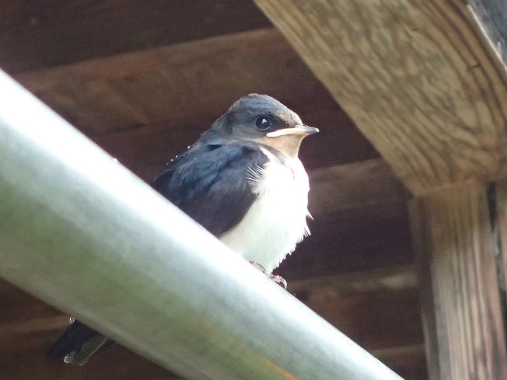 今朝のツバメ観察は、ご宿泊のお客様と一緒だったのですが、その後雨が降ってきたので、そのお客様が「濡れないように中に入っておいで」と声を掛けたところ、本当に1羽のヒナが入ってきてくれました!