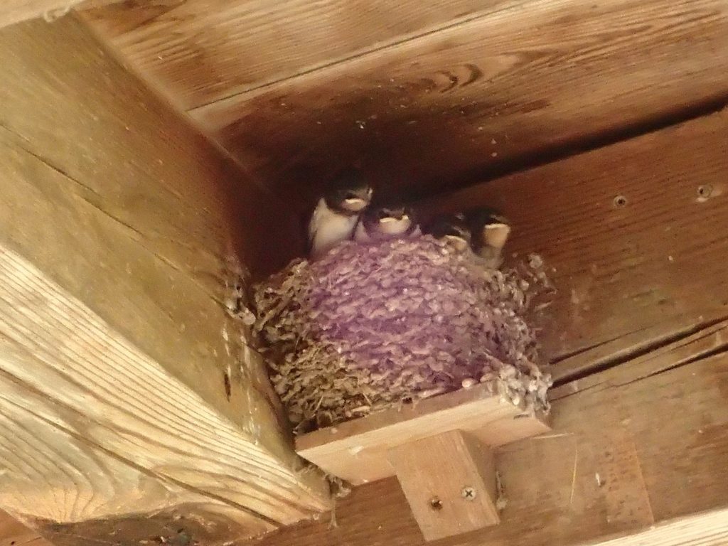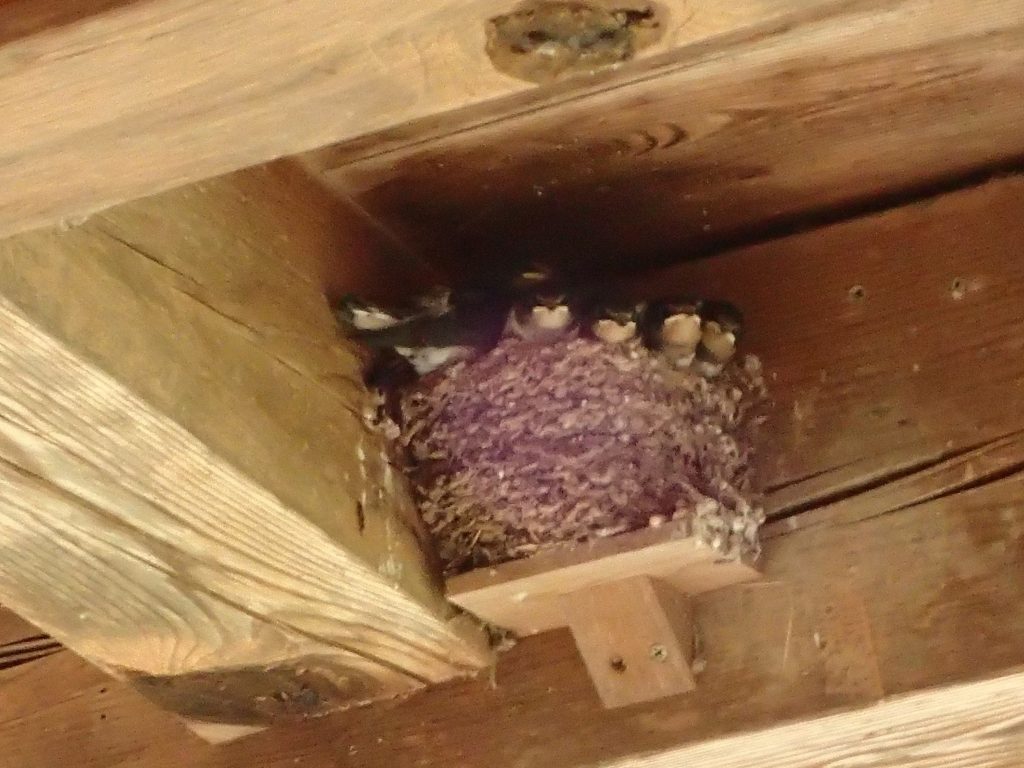 きのう、無事巣立ったツバメのヒナたちですが、夜にはまた巣に戻って寝てくれました。