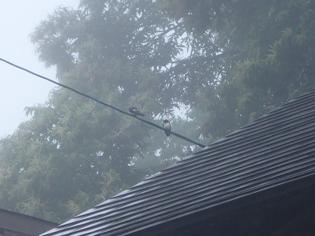 雨の中でも親ツバメは巣立ちを促して、気が付いた時には4羽が母屋前の電線に止まっていました。