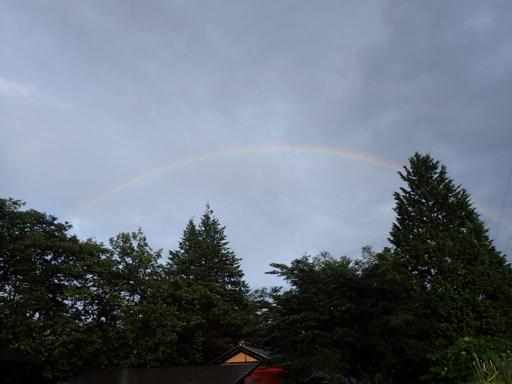 先刻まで強烈な夕立でしたので、「もしかしたら、虹が出ているかもですよ、、」とお客様に声を掛けたところ、お客様がすぐに窓の外を見て、「わー、本当に虹が出ている!」!!