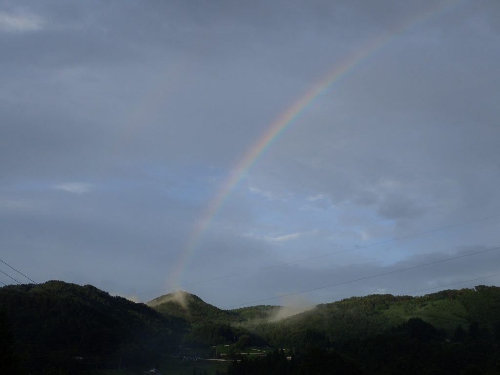 とても、大きな大きな虹でカメラの画面に入りきれませんでした。(電線が邪魔ですね、、)