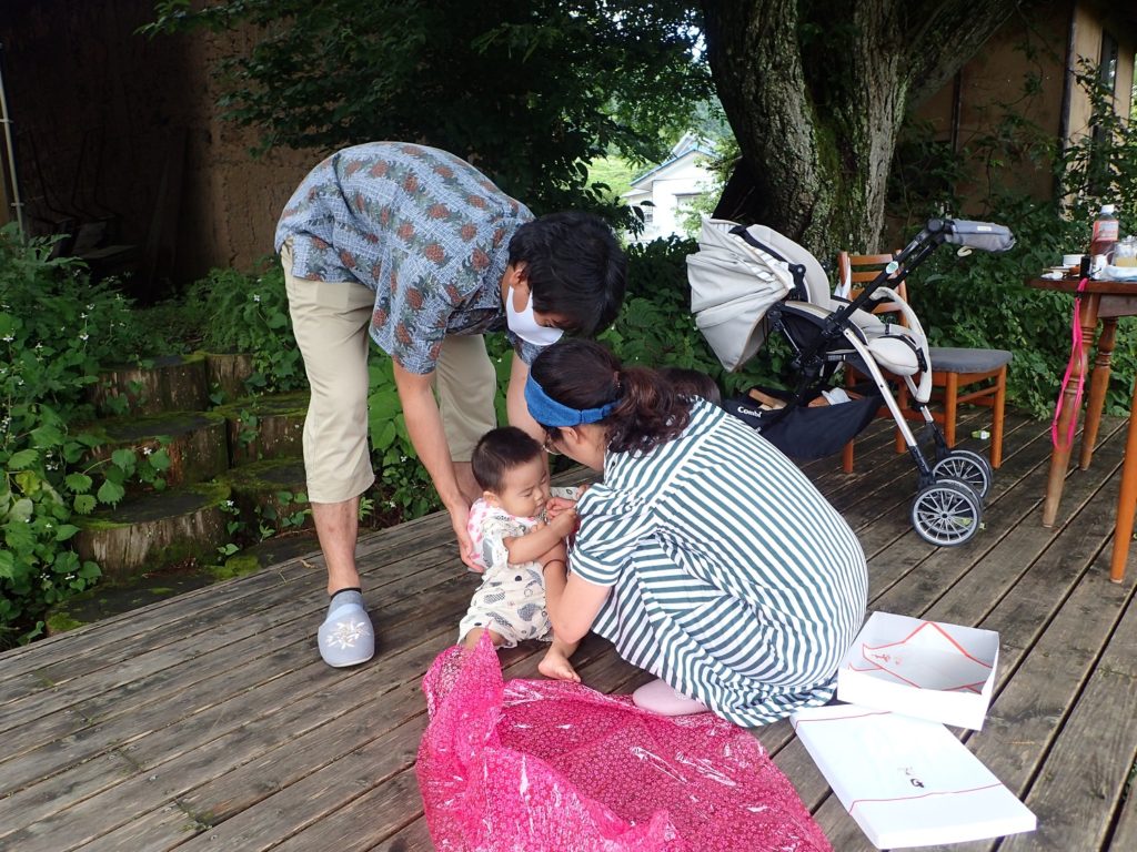 一昨年、1歳になるお子さんの健やかな成長を願うための「一升餅」という行事をウッドデッキでしてくださいましたお客様。