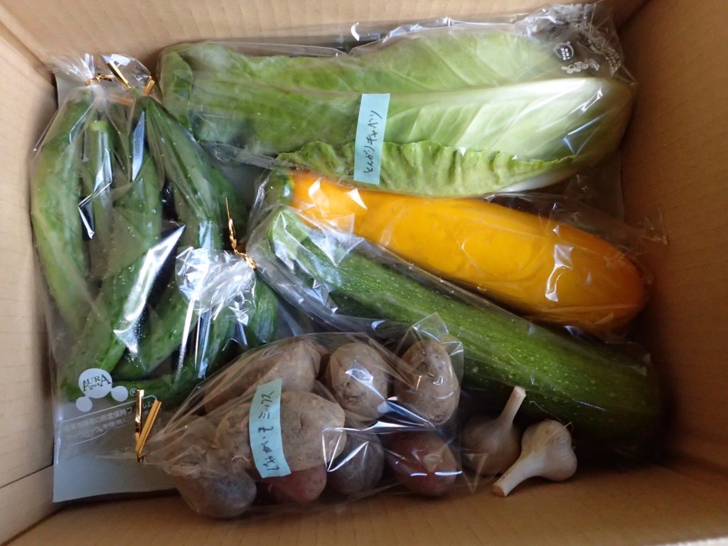 シカに大玉トマトを食べられたり、ミニトマトはハクビシンに、、と、なんだかお野菜がうまく揃わないでいたのですが、今日は、久しぶりに季節の野菜セットを発送できました!