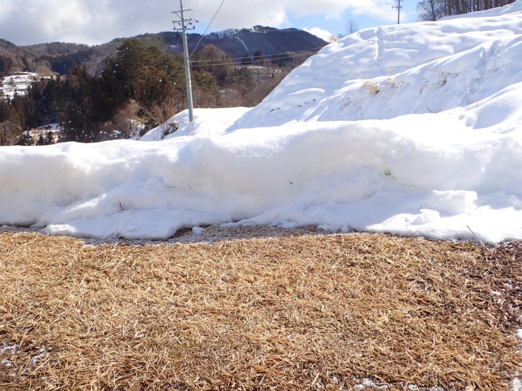 日当たりの良いところでは、ところどころ雪が融けていますが、除雪が入らない農道や畑は、根雪のままですね、、