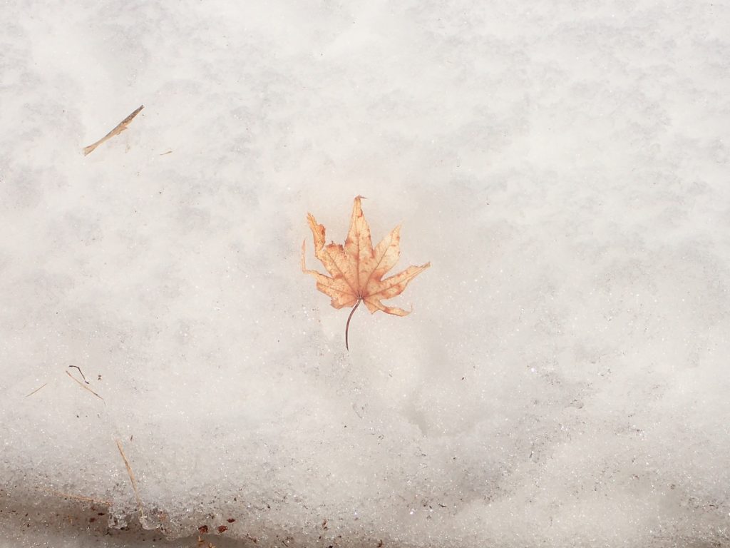 帰り道、雪の壁にカエデの枯葉が張り付いているのを発見!これはちょっと面白かったです!(^^)
