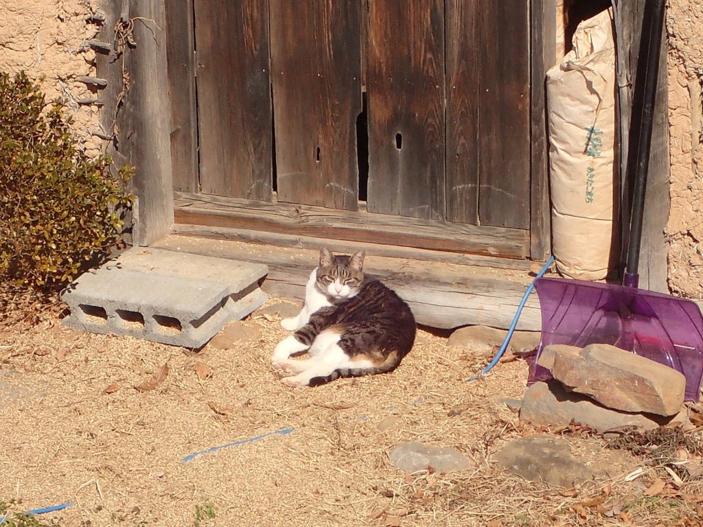 土蔵の前で日向ぼっこをしているチビ太も、なんとなく春の感じ。。