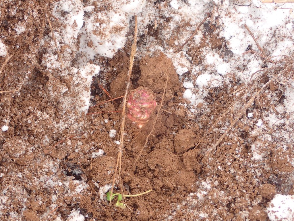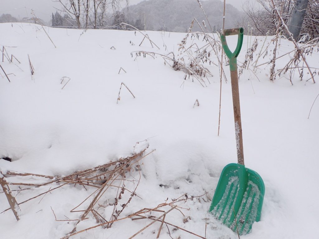 風がないので、雪の中でも農作業をするか、、と畑に出たのですが、一番初めに目に入ったのは、カーボロネロの茎でした!