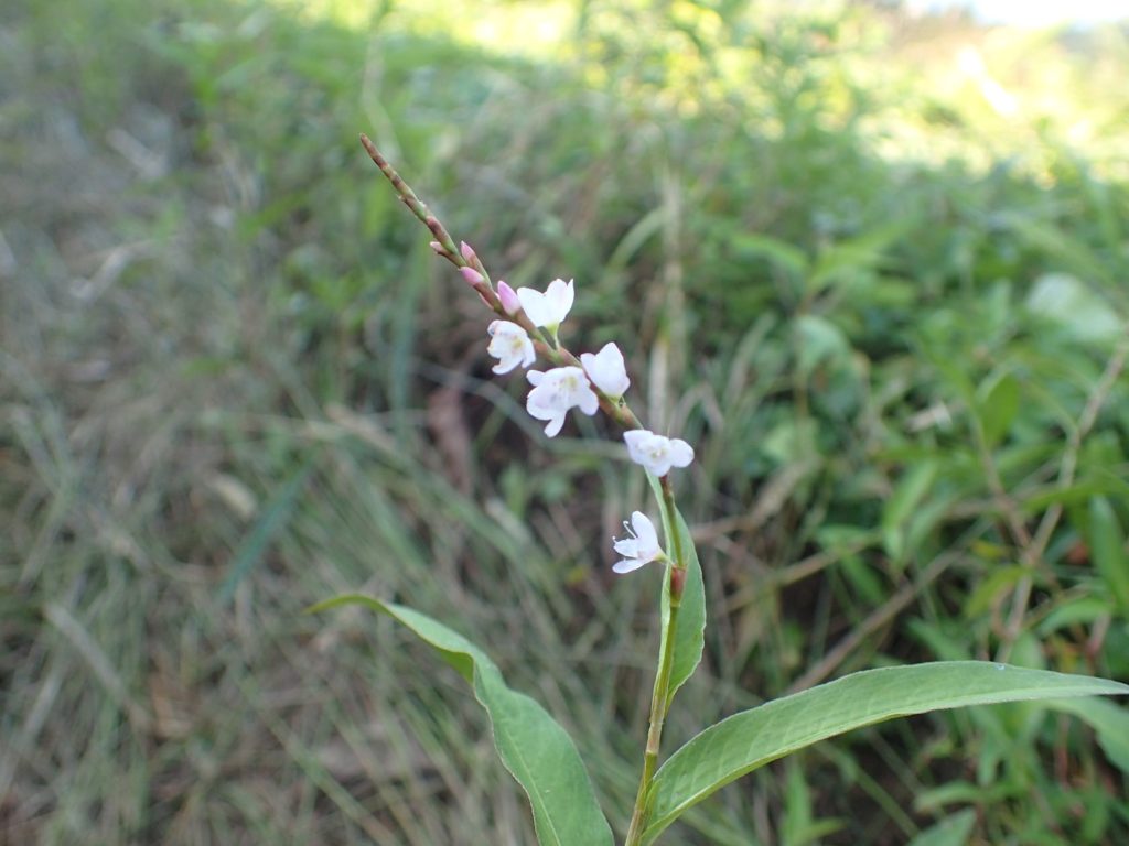 圃場に一本咲いていた、シロバナサクラタデ。友達が名前を教えてくれました。