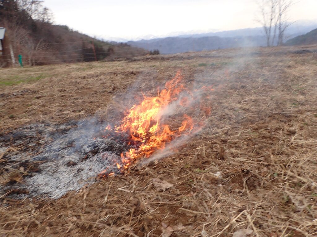 途中から風が強くなってきましたので、ちょっと焦りましたが、なんとか昨年の大豆ガラを畑で焼き終えました。。