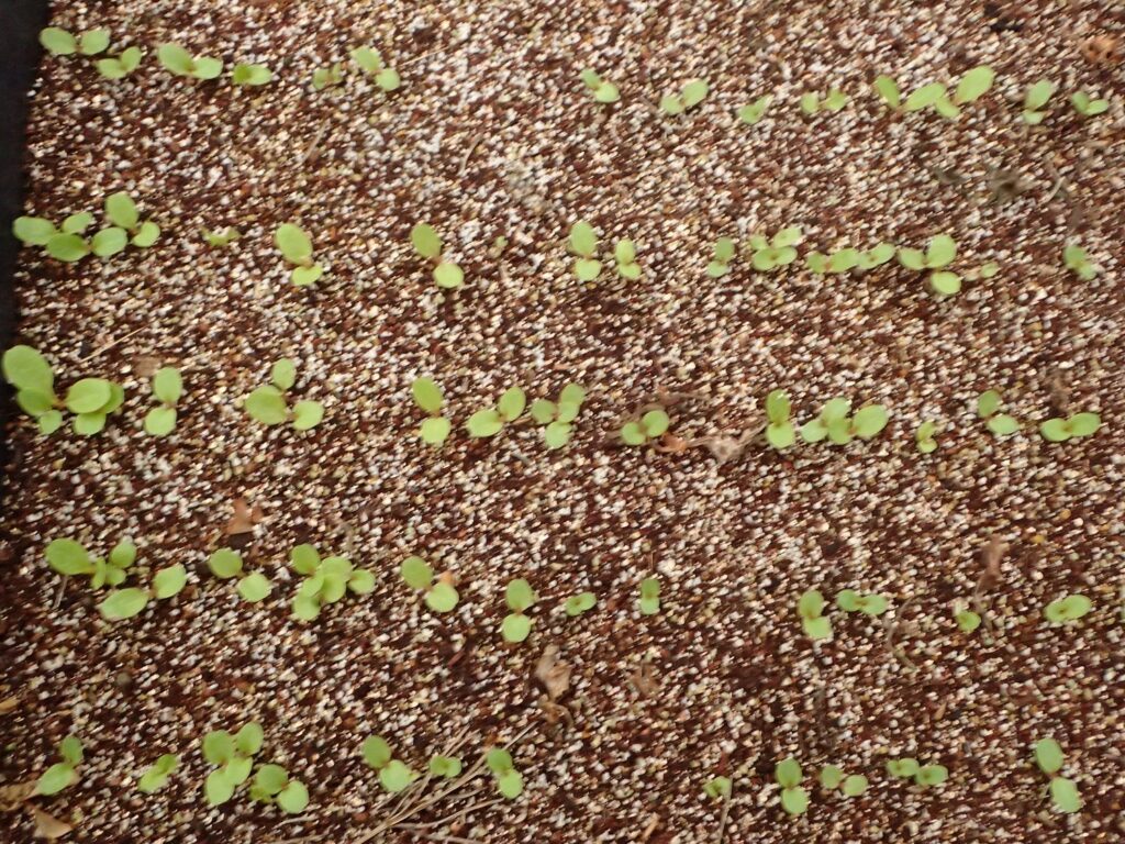 さて、ハウスの中では、3月末に蒔いたリーフレタス類の発芽が始まっています!