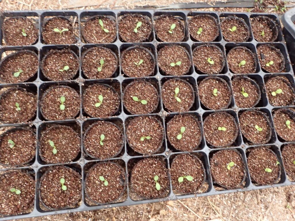 今朝は、発芽したリーフレタス類をポットに移植しました!