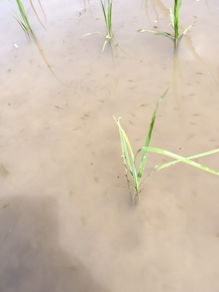 今日も暑かったですね、、炎天下の下、照りつける日差しの中で、仲間たちと田んぼの草取りをしました。