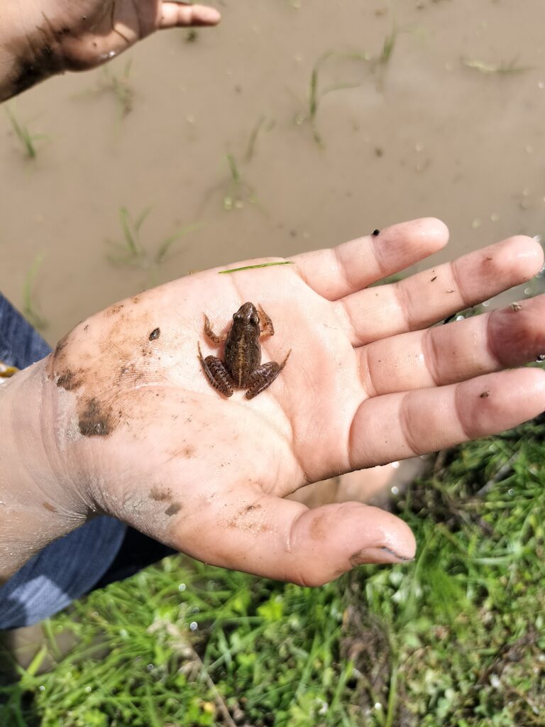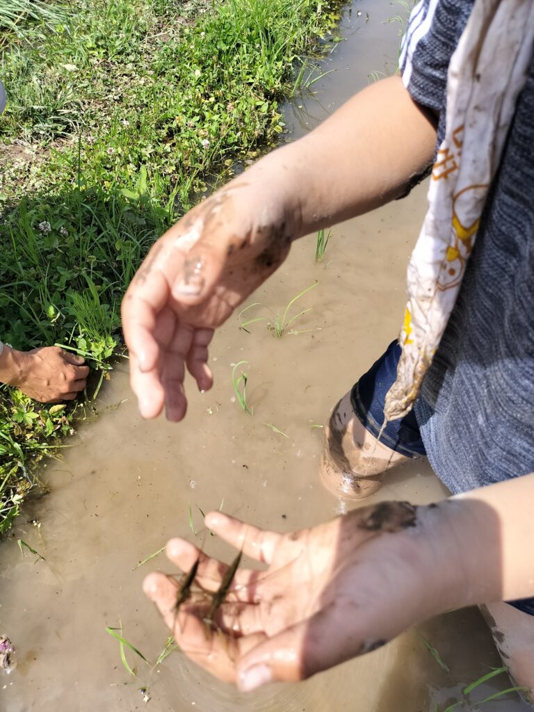 小さなお子さんたちも、全身泥んこになって田植えをしたり、カエル取りをしたり、最高に楽しそうでした!