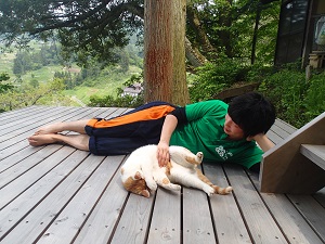 初めてお越しの信大you遊男子も、寝そべりながらチャイと戯れます。。