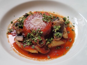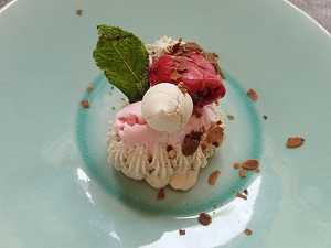 さて、朝市で自炊用のお野菜やブレス鶏、チーズなどをたっぷりと買い込みまいて、、サンモリス・ドゥ・サトネ村のレストランでランチ。