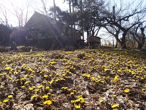 農楽里ファーム母屋周辺のフクジュソウが、ようやく満開となりました!!