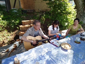 今日は、Mさんのギターと歌声もご披露されまして、夕暮れ時まで、皆さんと一緒に寛ぎと癒しのひと時を過ごすことが出来ました!!