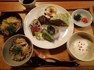 お食事に同席してくれました養生園の調理スタッフ、野本やよいさんのお料理にお誘いをして頂いたのです。
