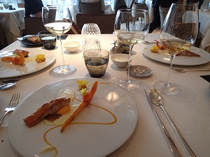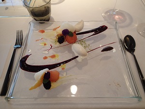 金目鯛がほろりと崩れ落ちそうなほどふんわりと焼き上げられていて、添えられたバターナッツカボチャとその上のニンジンの酢漬けも、、まるで和食を頂いているような感じもするほど、素材の味が活かされていてシンプルで繊細で複雑な味わいなのでした・・・。