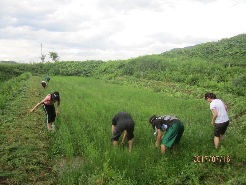 7月16日は、10月に福島愛育園の子どもたちの稲刈りイベントをする田んぼの草取り作業をしました。