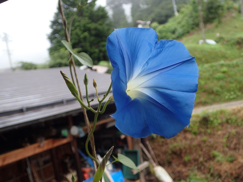 美しい青色の朝顔、ヘブンズブルーがようやく咲き始めました!