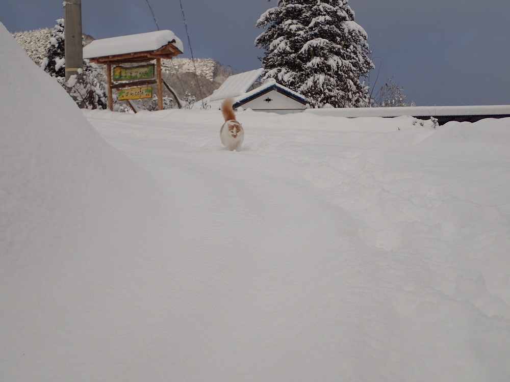 雪の中、ミコ太が少しお散歩について来てくれました。