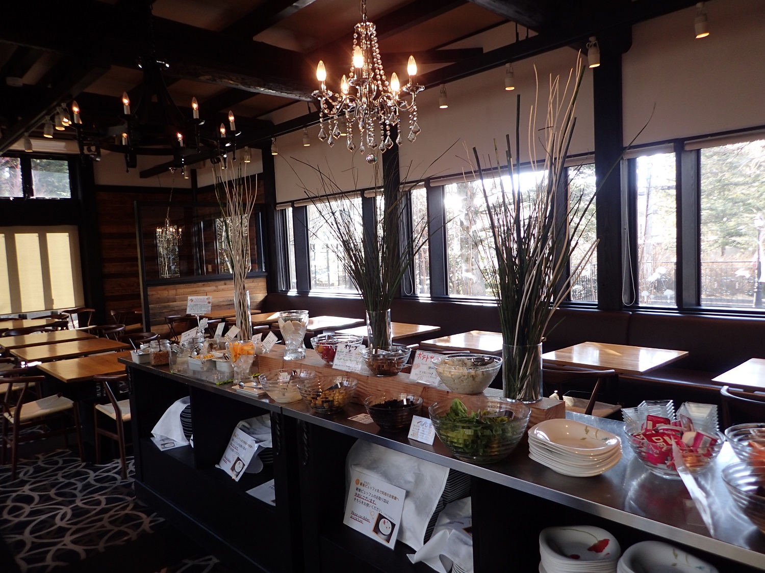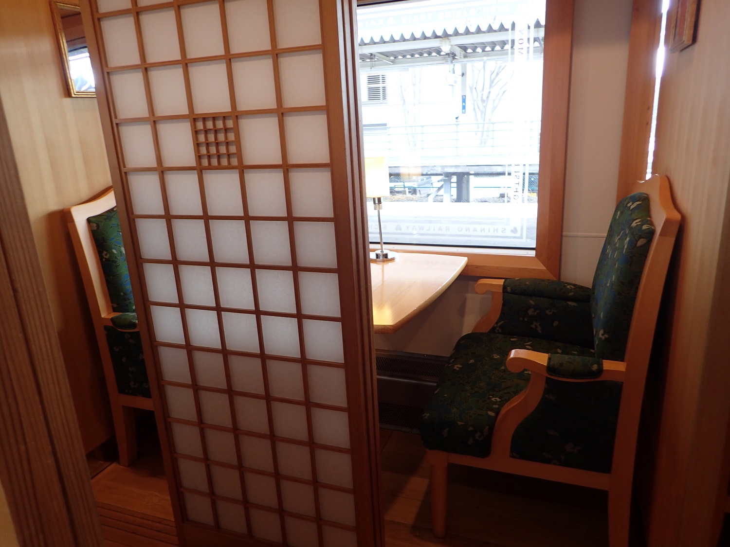 食堂車の車内です。障子のような仕切りも、椅子も、素敵でした!