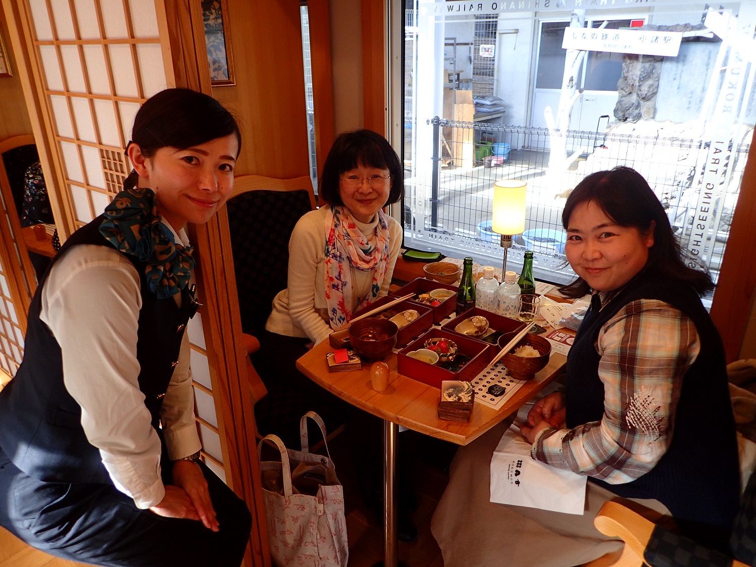(本当は、長野から軽井沢までの約2時間でゆったりとしたお食事を楽しめるのですが、諸事情で上田駅から出発!1時間でお食事を頂きました!)