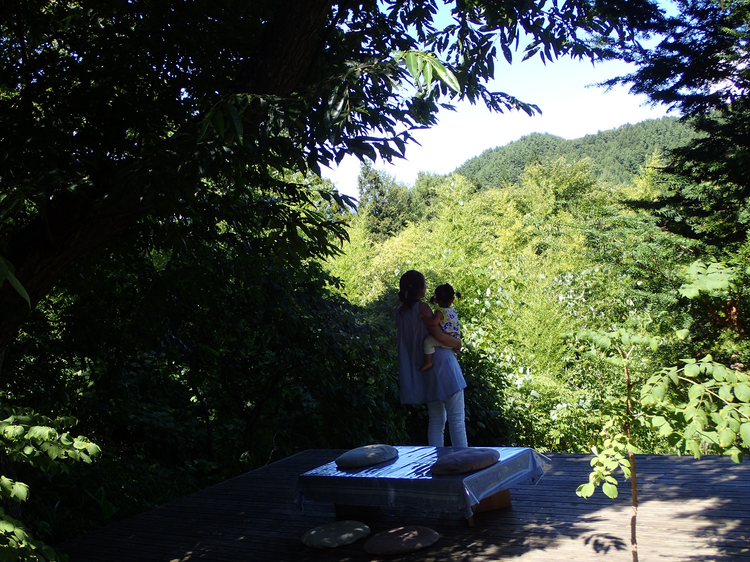 ご参加された、小さなお子さんをお連れの若いお母さん、、ちょっとお子さんがぐずったので、ウッドデッキにて一休み。