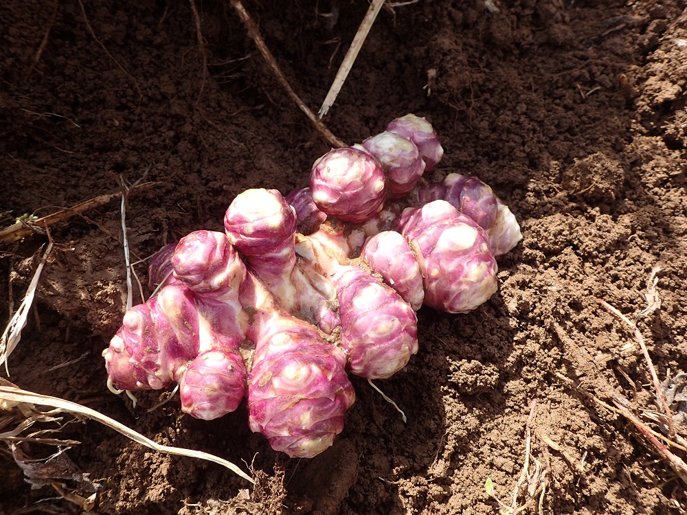 畑の根雪の中から、トピナンブール(赤キクイモ)を掘り上げて、発送しております!
