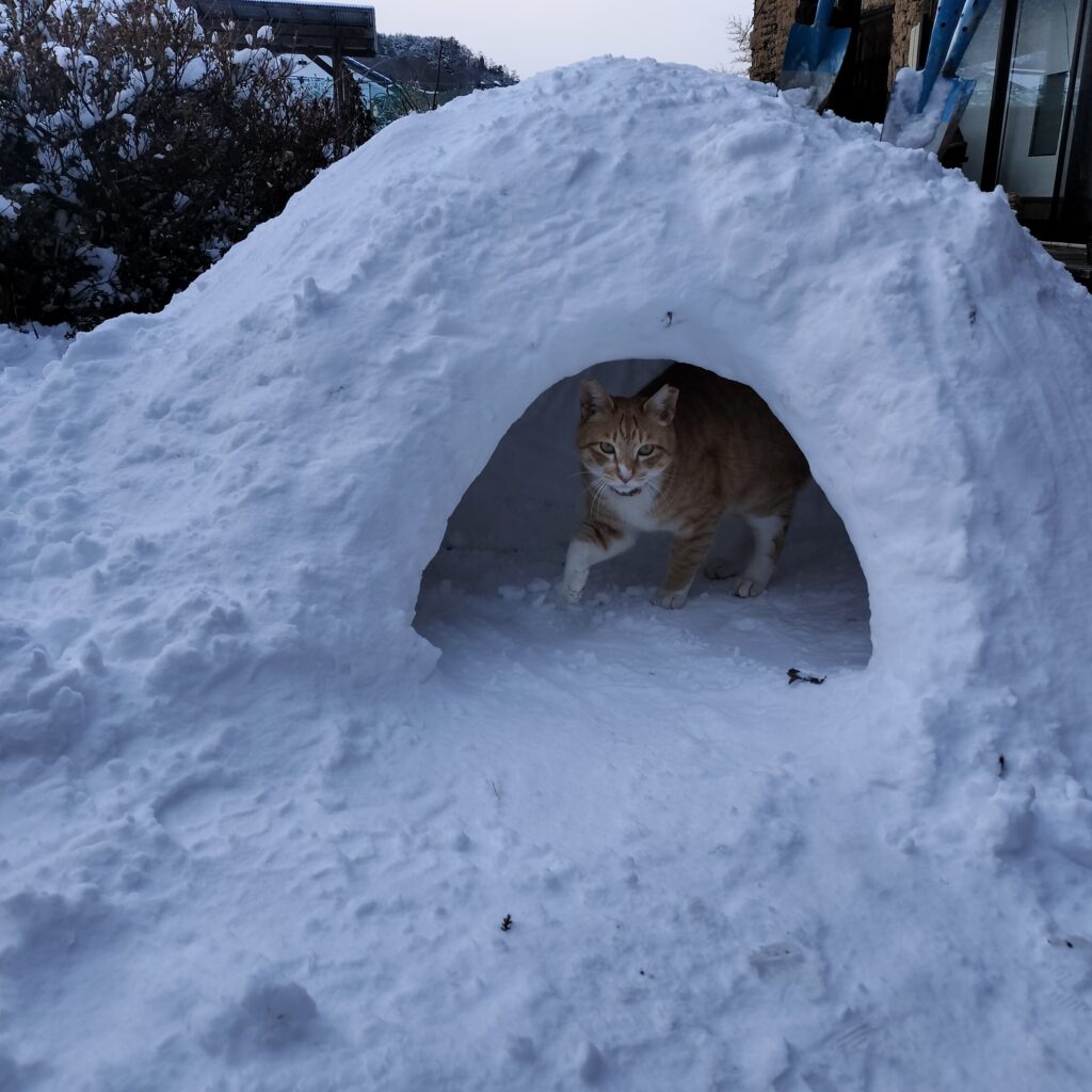 それでも、猫用のかまくらを作れるくらいには積もってくれました!