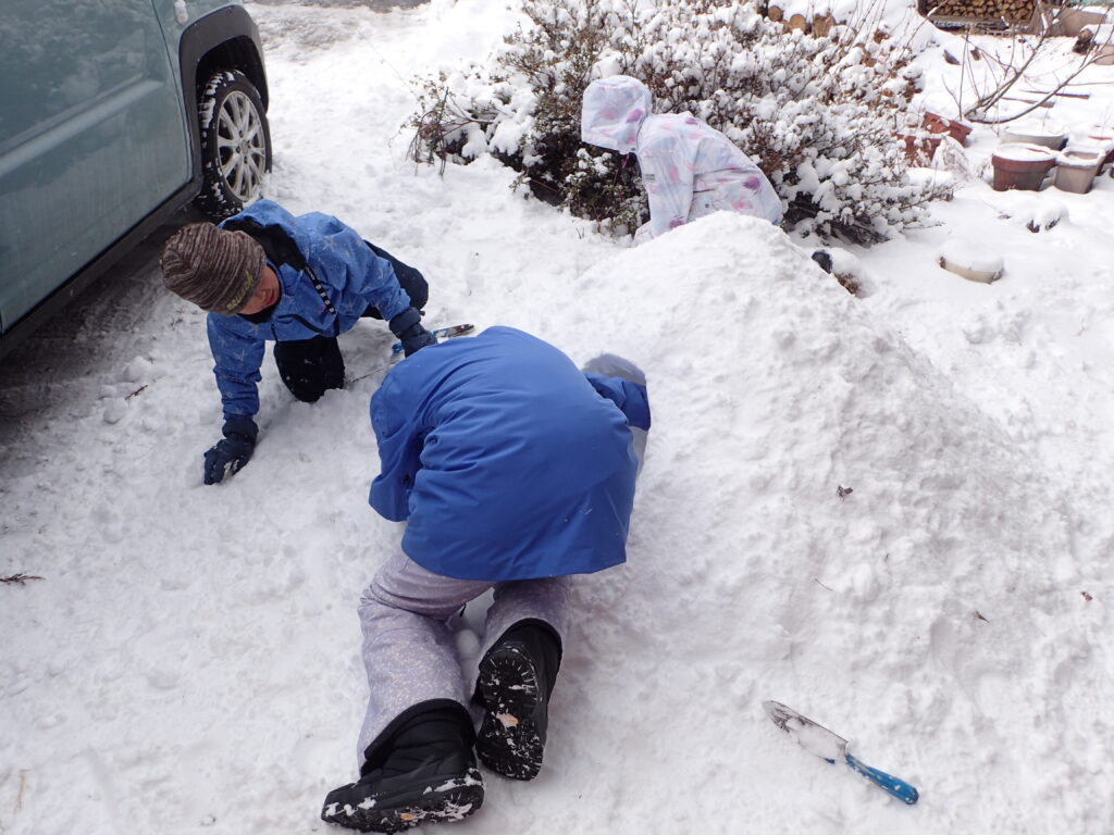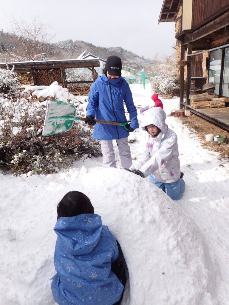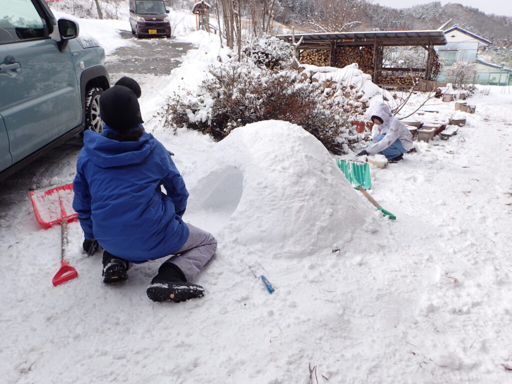 今年の山村留学生3人も、かまくらを作りに精を出しました!