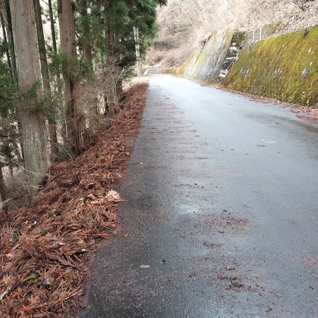路肩の落ち葉掃き、ビフォーアフターです!掃除をするとスッキリとして気持ちが良いですね!