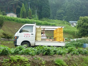 何やら、お祭りの屋台のような軽トラが出現。でも、おでん屋さんではありませんよ。雨が降ってきそうなので、プロジェクターの雨よけを作っているのです。