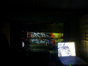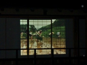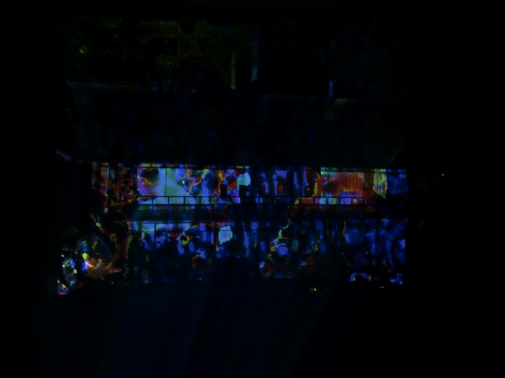 そして最後はエプソンさんとのコラボ、古民家の障子での映像上映と、古民家丸ごとをスクリーンにしてのアートサイネージ。雨の中でしたが、皆さん傘をさして鑑賞しました。