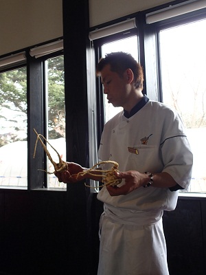 パースニップというユニークなお野菜を説明して下さる加藤さんです。